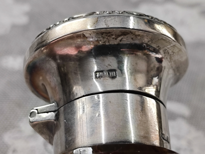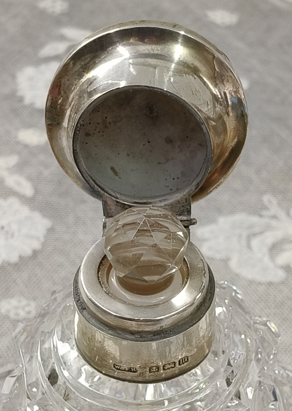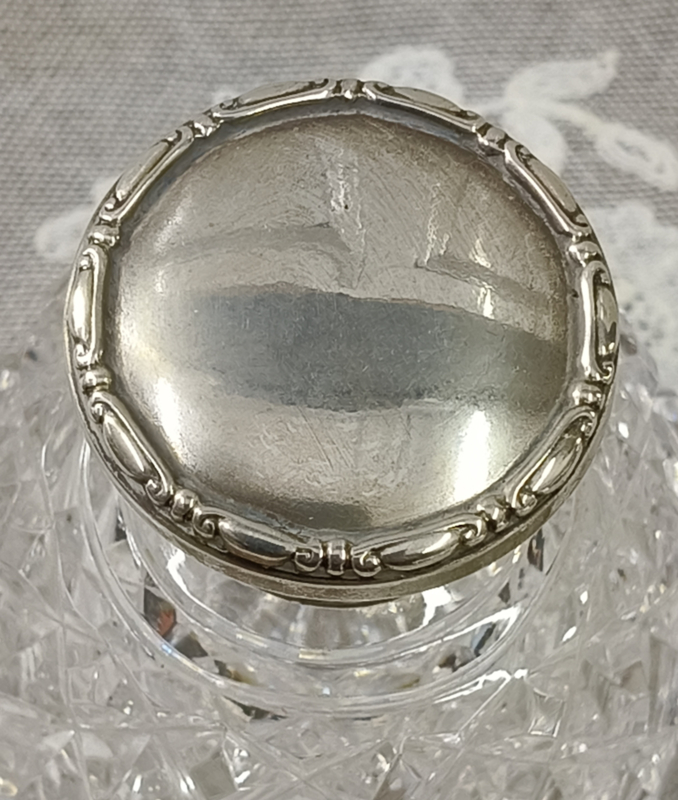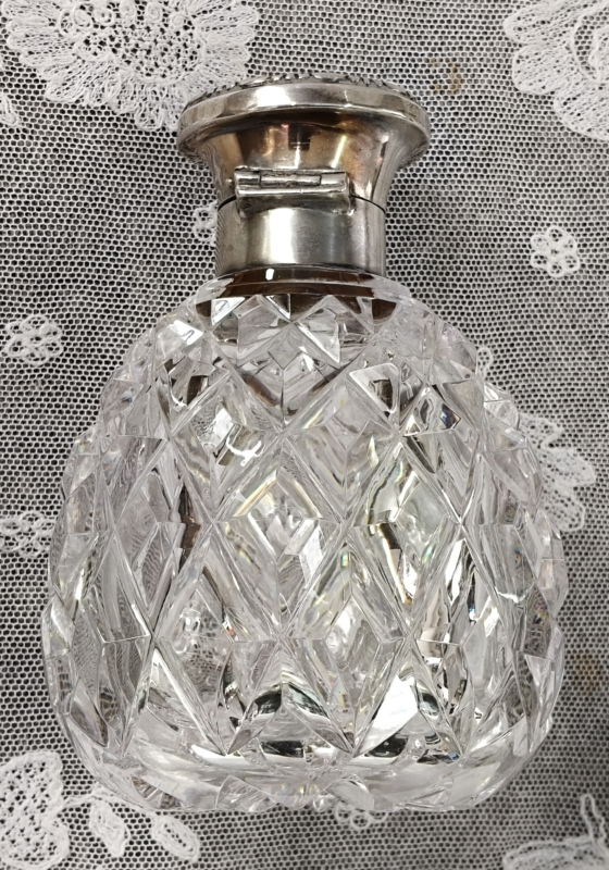 Oud Engelse parfum fles met zilveren dop