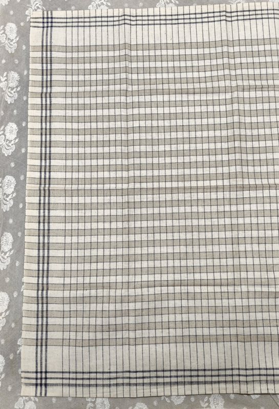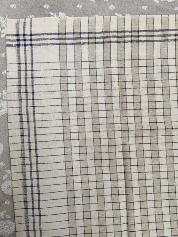 Oude geblokte theedoek, donkerblauw streep